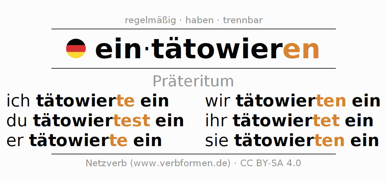 - ich tätowierte ein (1. PersonSingular)