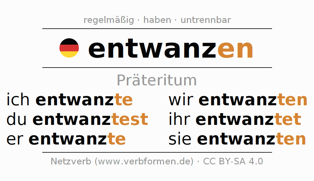 Das Verb entwanzen vollständig in allen Personen und Numeri im Präteritum Indikativ konjugiert