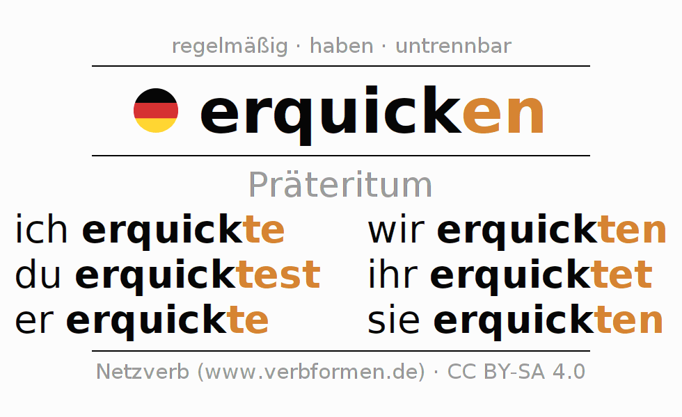 Das Verb erquicken vollständig in allen Personen und Numeri im Präteritum Indikativ konjugiert