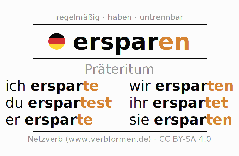 Das Verb ersparen vollständig in allen Personen und Numeri im Präteritum Indikativ konjugiert
