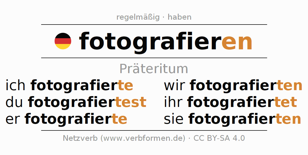 Das Verb fotografieren vollständig in allen Personen und Numeri im Präteritum Indikativ konjugiert