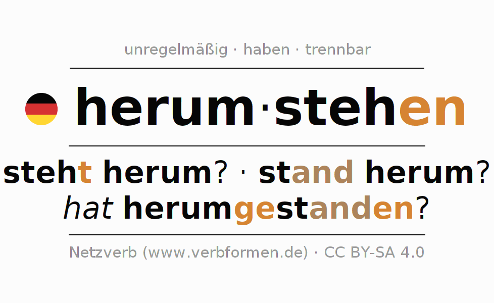 Das Verb herumstehen (hat) vollständig in allen Personen und Numeri im Präteritum Indikativ konjugiert