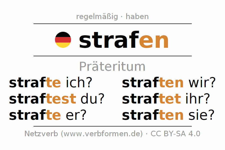 Das Verb strafen vollständig in allen Personen und Numeri im Präteritum Indikativ konjugiert