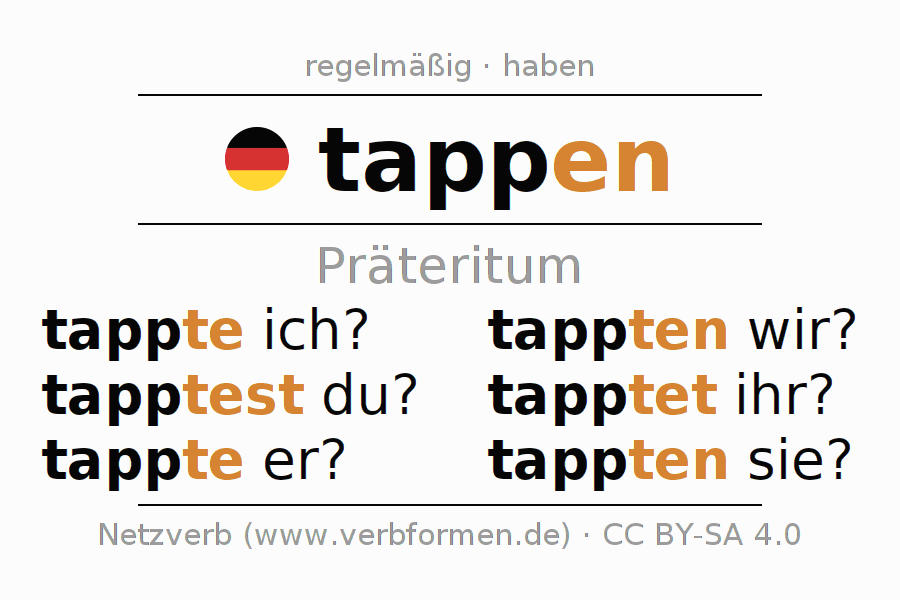 Das Verb tappen (hat) vollständig in allen Personen und Numeri im Präteritum Indikativ konjugiert