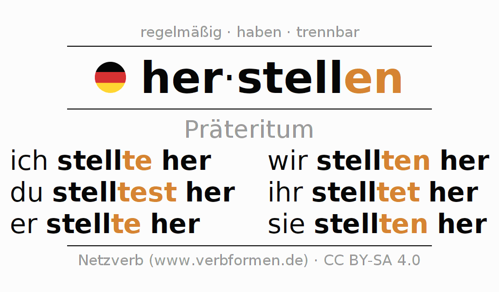 Das Verb herstellen vollständig in allen Personen und Numeri im Präteritum Indikativ konjugiert