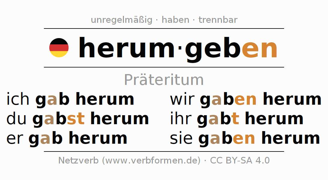 Das Verb herumgeben vollständig in allen Personen und Numeri im Präteritum Indikativ konjugiert