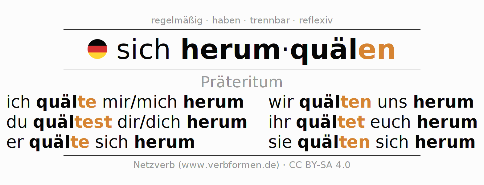 Das Verb sich herumquälen vollständig in allen Personen und Numeri im Präteritum Indikativ konjugiert