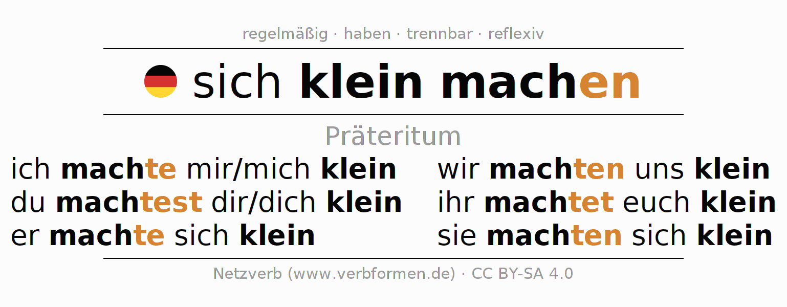 Verbformen im Präteritum von sich kleinmachen