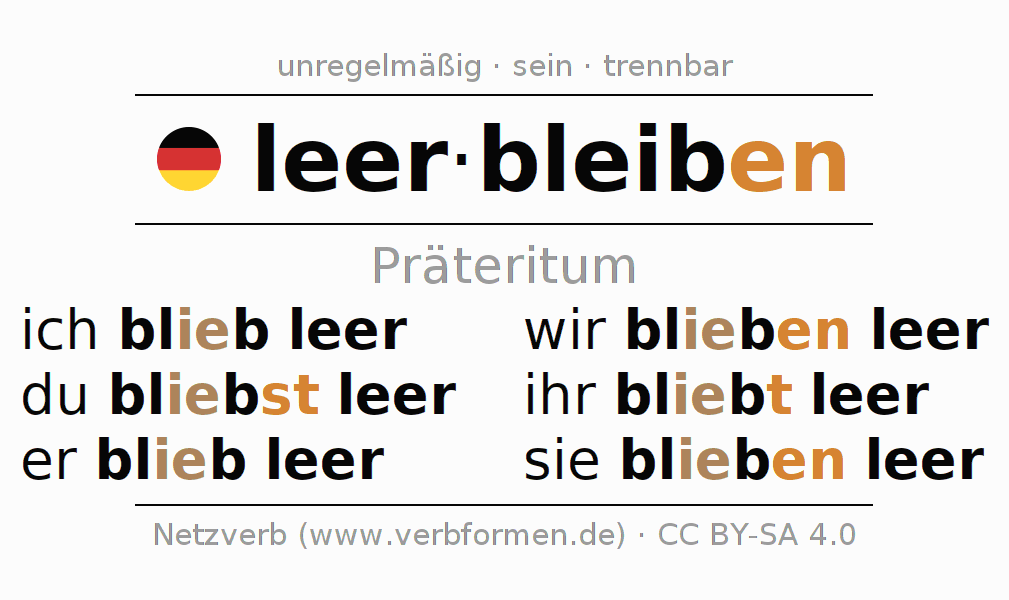 Das Verb leerbleiben vollständig in allen Personen und Numeri im Präteritum Indikativ konjugiert