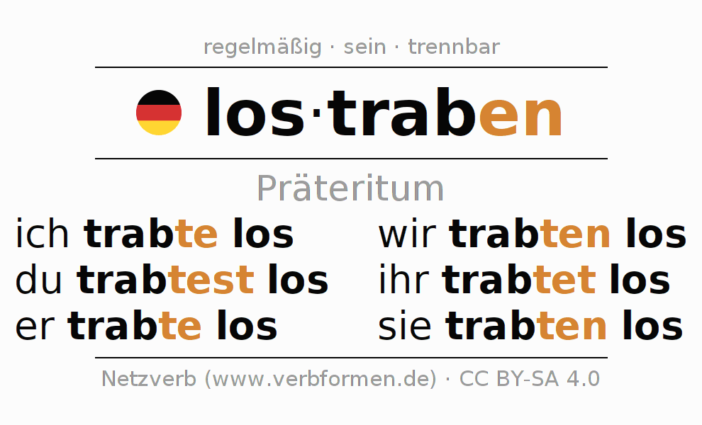 Das Verb lostraben vollständig in allen Personen und Numeri im Präteritum Indikativ konjugiert