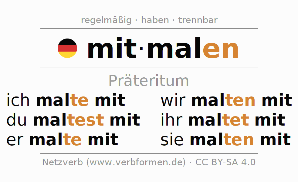 Das Verb mitmalen vollständig in allen Personen und Numeri im Präteritum Indikativ konjugiert