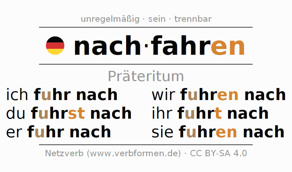 Das Verb nachfahren (ist) vollständig in allen Personen und Numeri im Präteritum Indikativ konjugiert