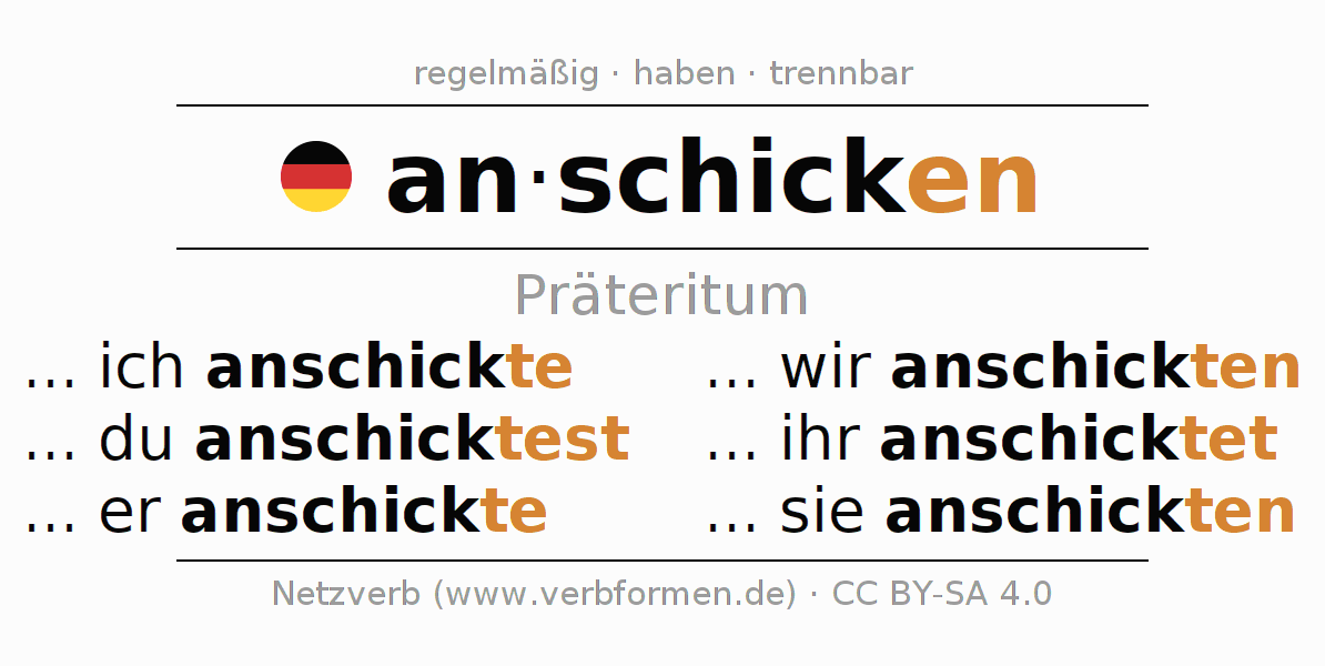 Das Verb anschicken vollständig in allen Personen und Numeri im Präteritum Indikativ konjugiert