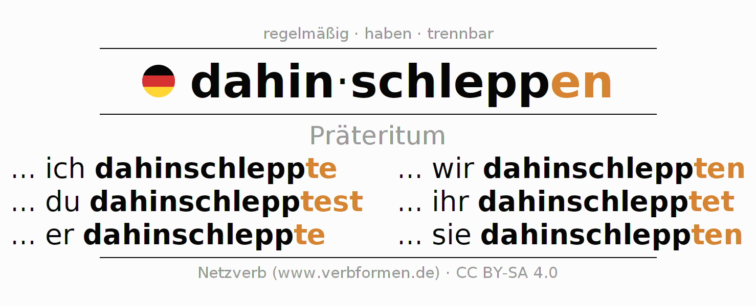 Das Verb dahinschleppen vollständig in allen Personen und Numeri im Präteritum Indikativ konjugiert