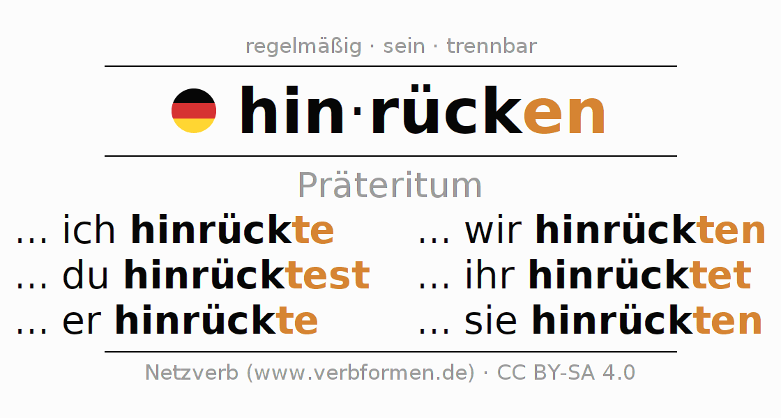 Das Verb hinrücken (ist) vollständig in allen Personen und Numeri im Präteritum Indikativ konjugiert
