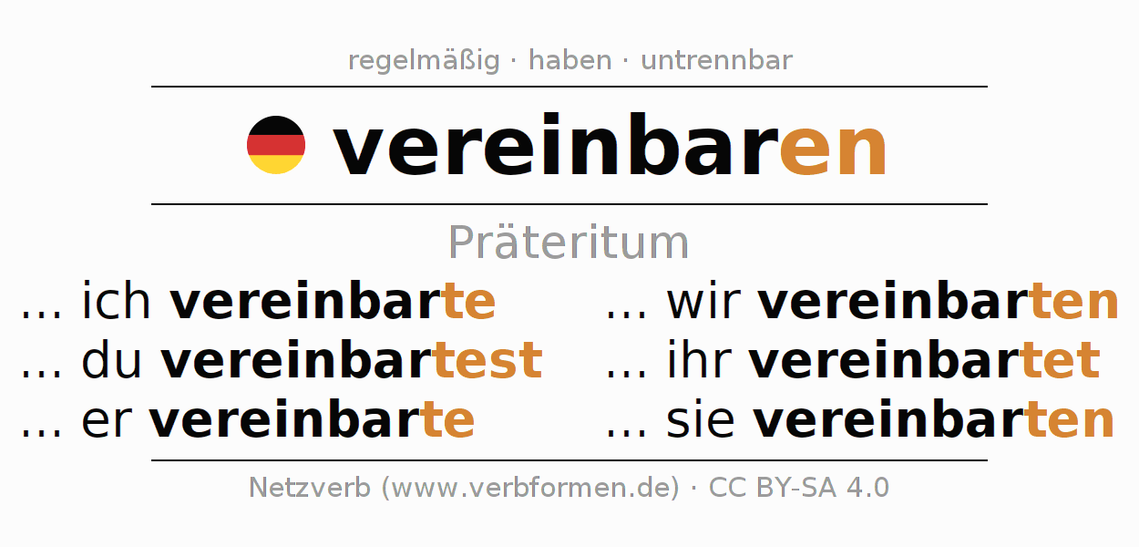 Das Verb vereinbaren vollständig in allen Personen und Numeri im Präteritum Indikativ konjugiert