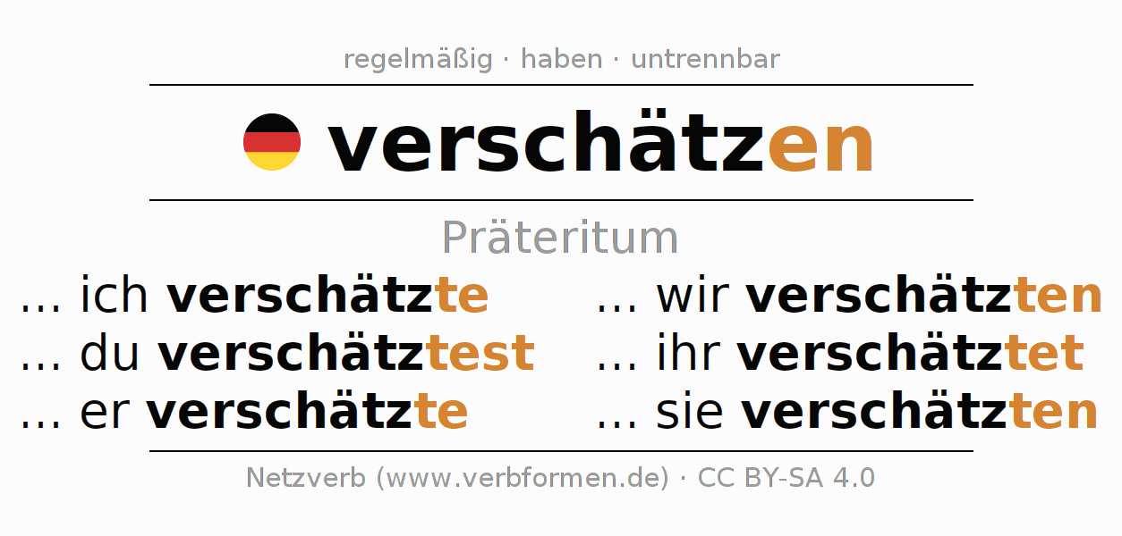 Das Verb verschätzen vollständig in allen Personen und Numeri im Präteritum Indikativ konjugiert