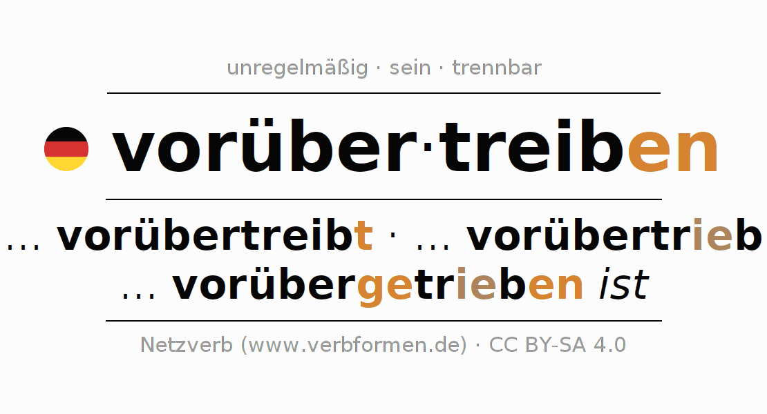 Das Verb vorübertreiben vollständig in allen Personen und Numeri im Präteritum Indikativ konjugiert