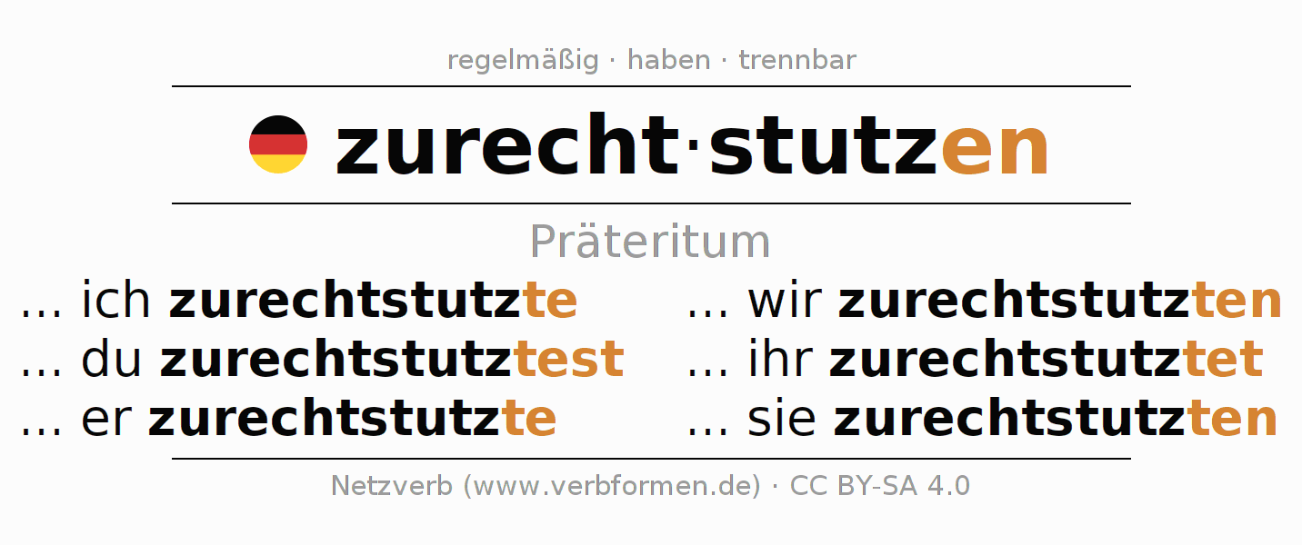 Das Verb zurechtstutzen vollständig in allen Personen und Numeri im Präteritum Indikativ konjugiert