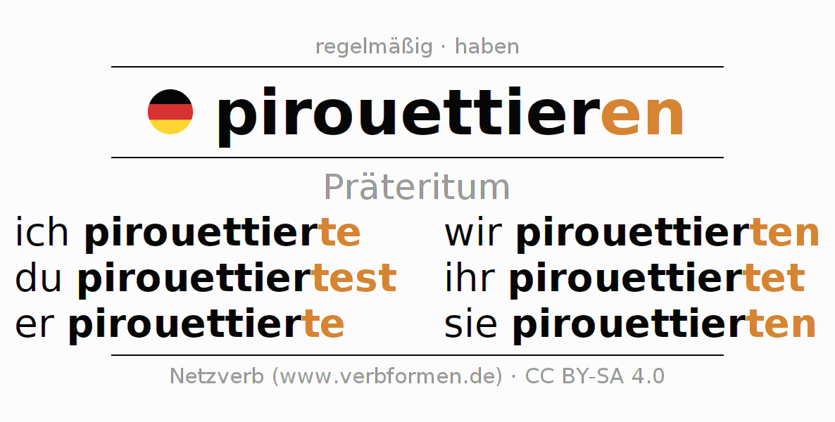 Das Verb pirouettieren vollständig in allen Personen und Numeri im Präteritum Indikativ konjugiert