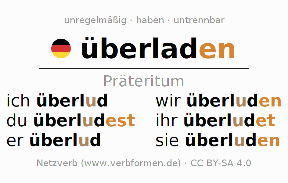 Das Verb überladen vollständig in allen Personen und Numeri im Präteritum Indikativ konjugiert
