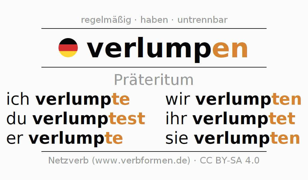 Das Verb verlumpen vollständig in allen Personen und Numeri im Präteritum Indikativ konjugiert