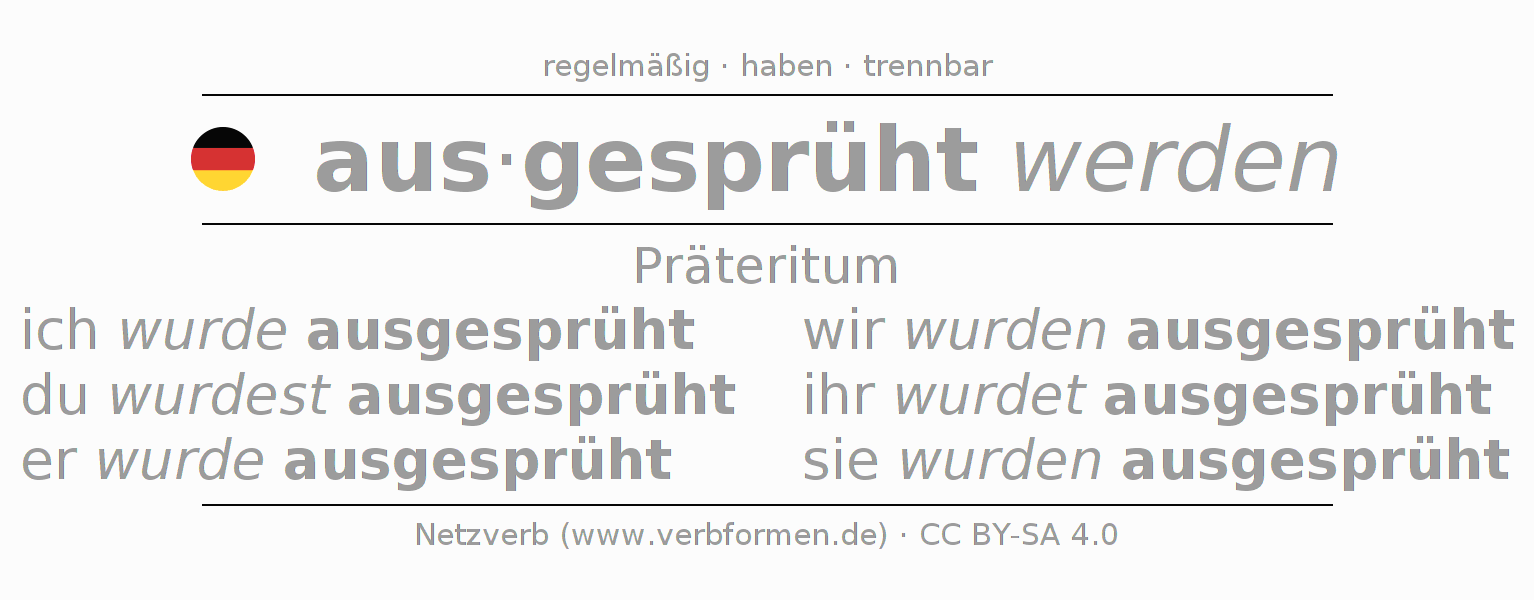 Das Verb aussprühen vollständig in allen Personen und Numeri im Präteritum Indikativ konjugiert