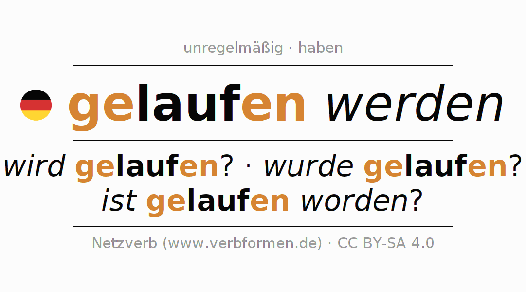 Die Konjugation von laufen im Präteritum Indikativ Vergangenheit Vorgangspassiv ist: wurde ich gelaufen?, wurdest du gelaufen?, wurde er gelaufen?, wurden wir gelaufen?, wurdet ihr gelaufen?, wurden sie gelaufen?.Die Bildung dieser Formen entspricht gewissen grammatischen Regeln. So auch die Vorgaben zur Konjugation der einfachen Verbformen von laufen im Präteritum. 24Kommentare ☆4.769231
