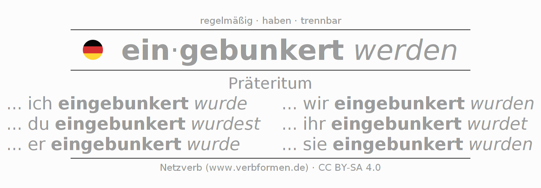 Das Verb einbunkern vollständig in allen Personen und Numeri im Präteritum Indikativ konjugiert
