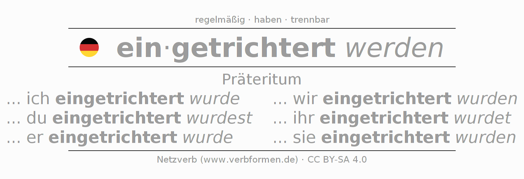 Das Verb eintrichtern vollständig in allen Personen und Numeri im Präteritum Indikativ konjugiert