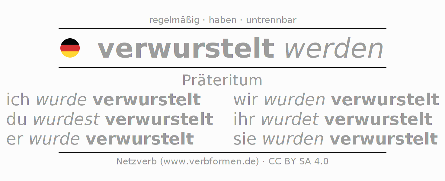 Das Verb verwursteln vollständig in allen Personen und Numeri im Präteritum Indikativ konjugiert