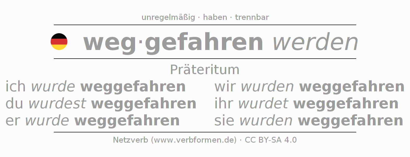 Das Verb wegfahren (hat) vollständig in allen Personen und Numeri im Präteritum Indikativ konjugiert