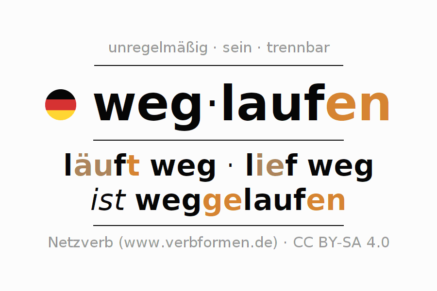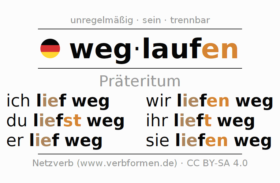 Das Verb weglaufen vollständig in allen Personen und Numeri im Präteritum Indikativ konjugiert