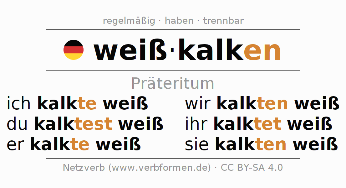 - Wie konjugiert man weißkalken im Präteritum?