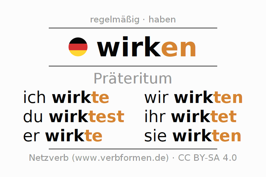 Das Verb wirken vollständig in allen Personen und Numeri im Präteritum Indikativ konjugiert