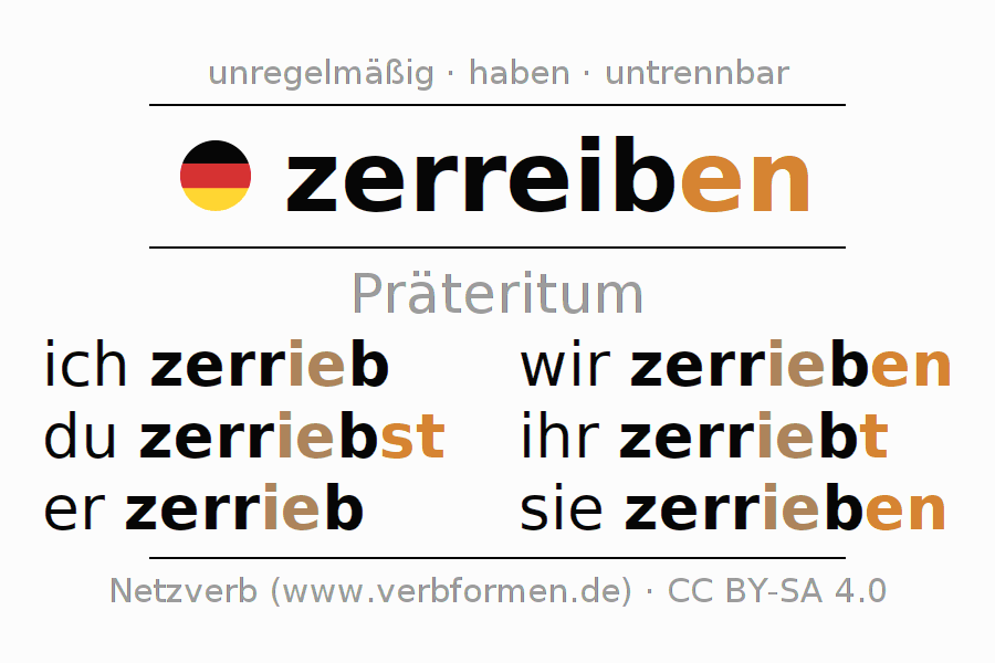 Das Verb zerreiben vollständig in allen Personen und Numeri im Präteritum Indikativ konjugiert