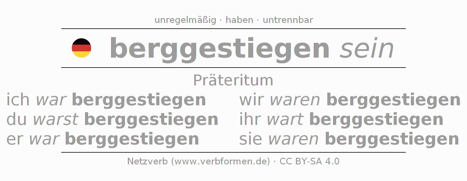 Das Verb bergsteigen (hat) vollständig in allen Personen und Numeri im Präteritum Indikativ konjugiert