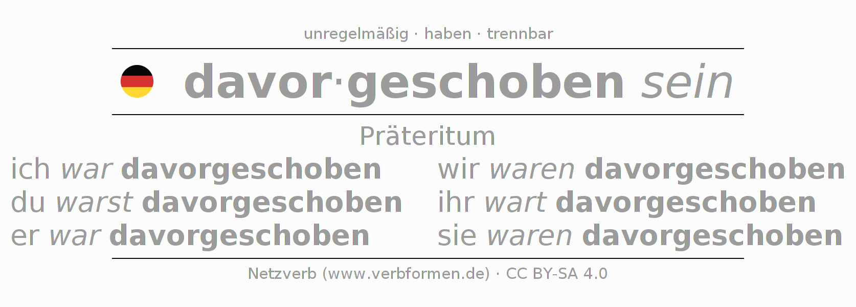 Das Verb davorschieben vollständig in allen Personen und Numeri im Präteritum Indikativ konjugiert