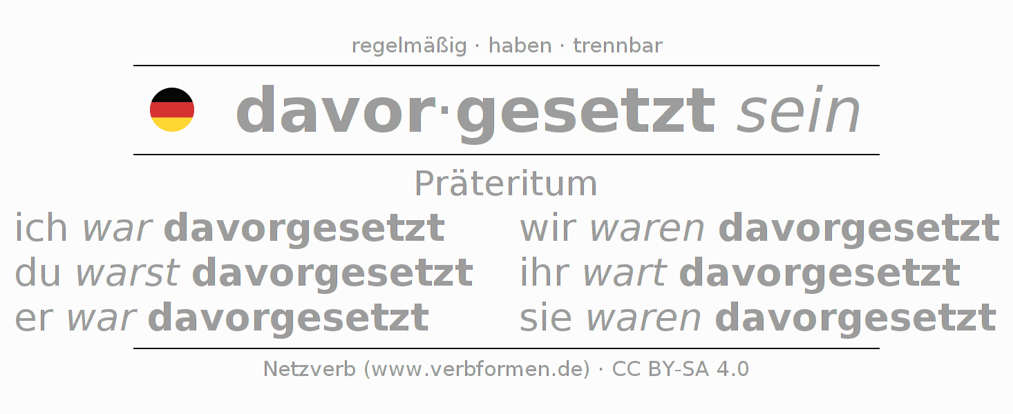 Das Verb davorsetzen vollständig in allen Personen und Numeri im Präteritum Indikativ konjugiert
