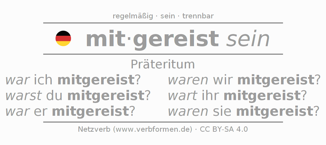Das Verb mitreisen vollständig in allen Personen und Numeri im Präteritum Indikativ konjugiert