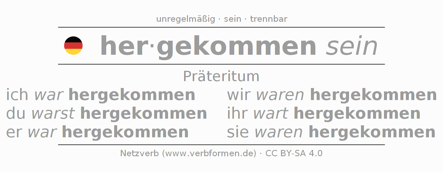 Das Verb herkommen vollständig in allen Personen und Numeri im Präteritum Indikativ konjugiert