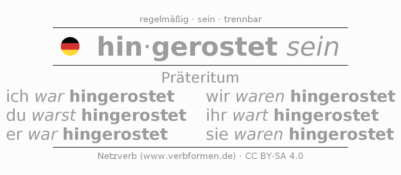 Das Verb hinrosten vollständig in allen Personen und Numeri im Präteritum Indikativ konjugiert