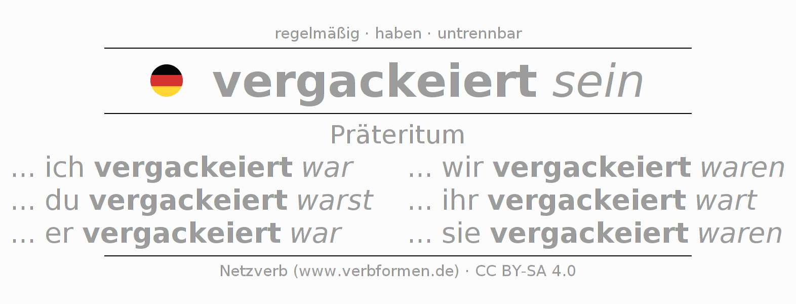 Das Verb vergackeiern vollständig in allen Personen und Numeri im Präteritum Indikativ konjugiert