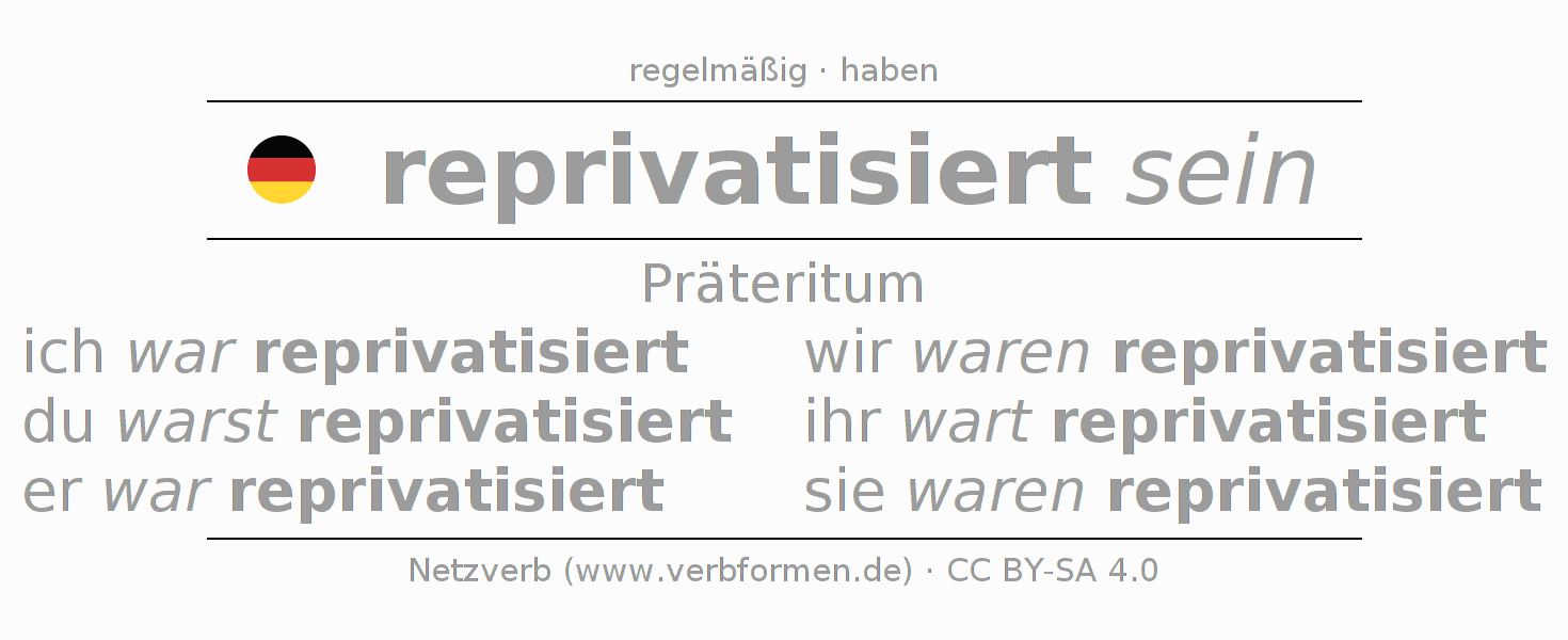 Das Verb reprivatisieren vollständig in allen Personen und Numeri im Präteritum Indikativ konjugiert
