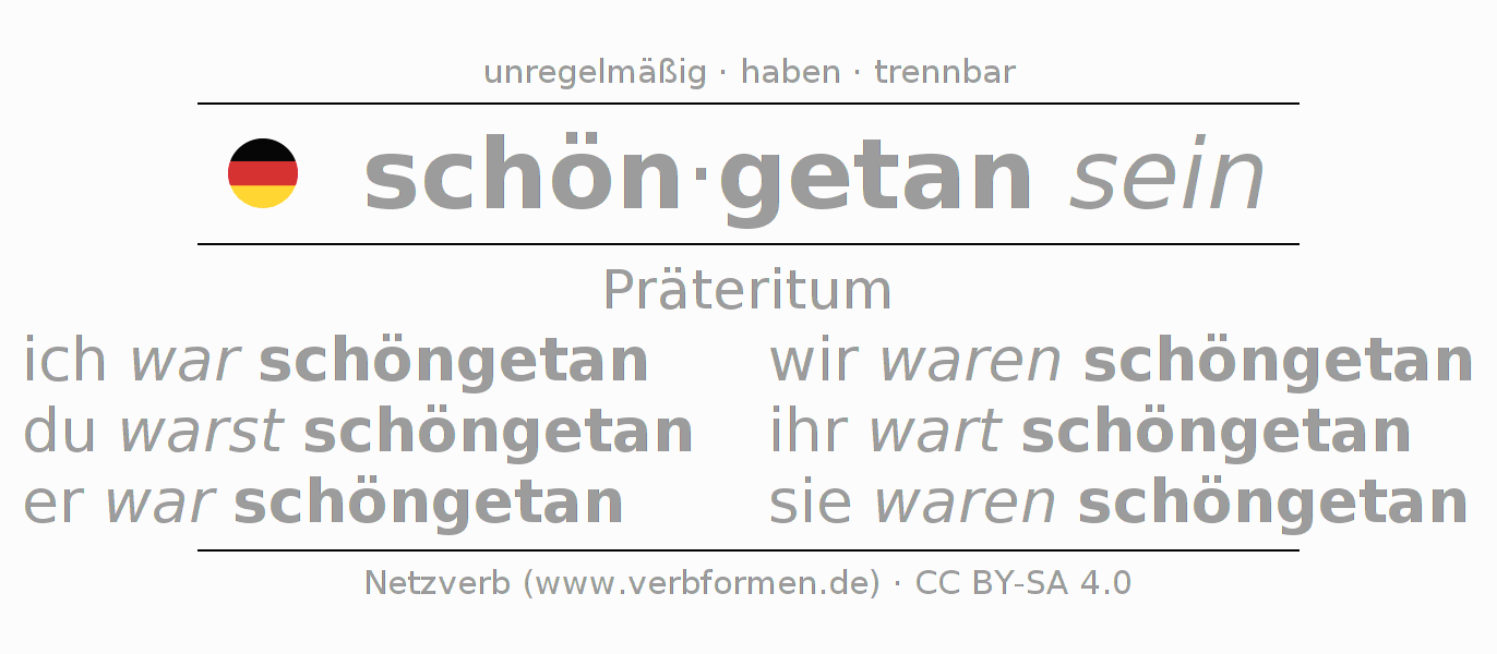 Das Verb schöntun vollständig in allen Personen und Numeri im Präteritum Indikativ konjugiert