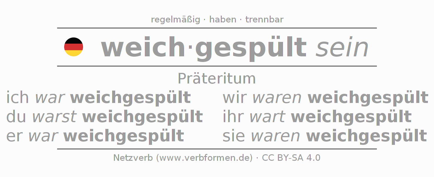 Das Verb weichspülen vollständig in allen Personen und Numeri im Präteritum Indikativ konjugiert