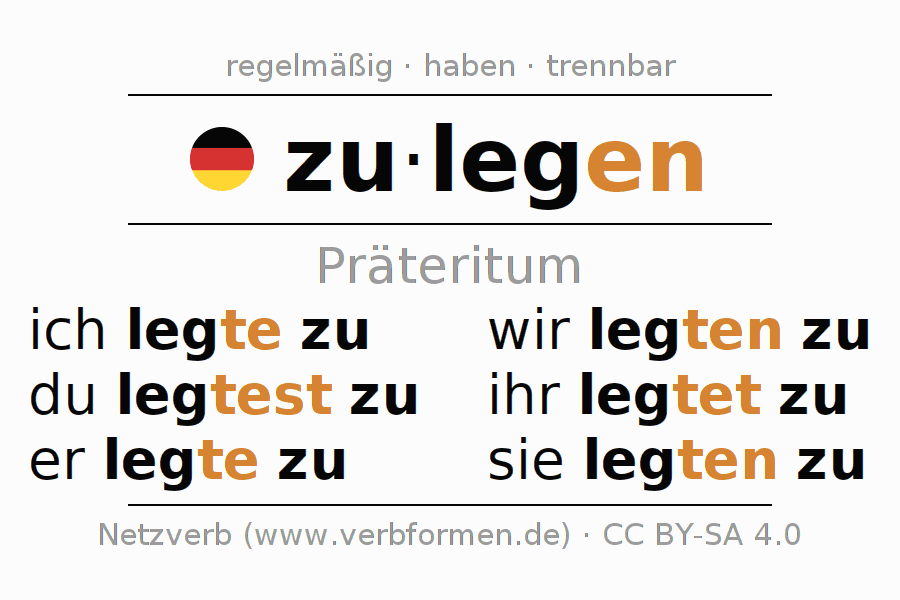 Das Verb zulegen vollständig in allen Personen und Numeri im Präteritum Indikativ konjugiert