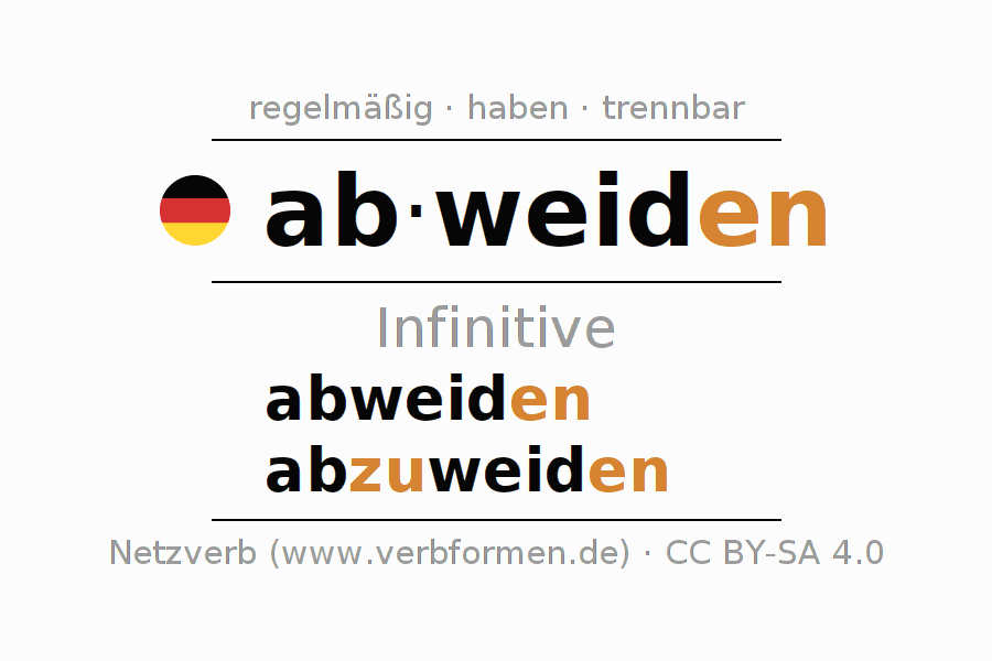 Die Formen im Infinitiv von abweiden sind: abweiden, abzuweiden