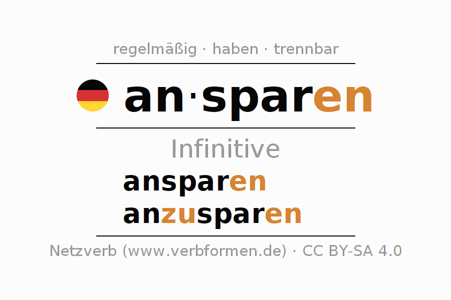 Das Verb ansparen vollständig in allen Personen und Numeri im Infinitiv Präsens Perfekt konjugiert