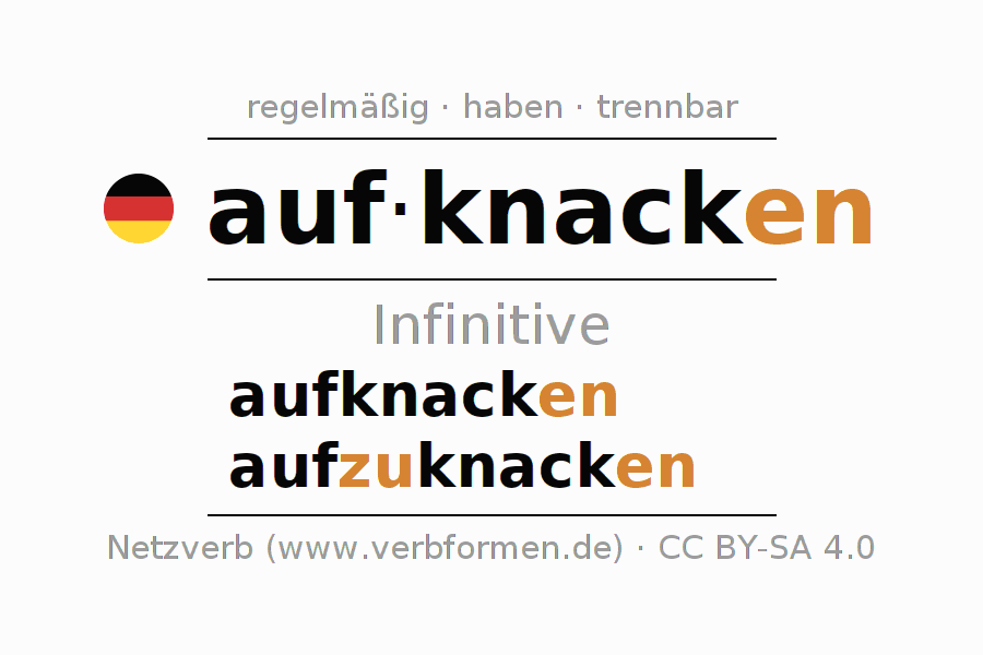 Beispiele im Aktiv Infinitiv des Verbs aufknacken